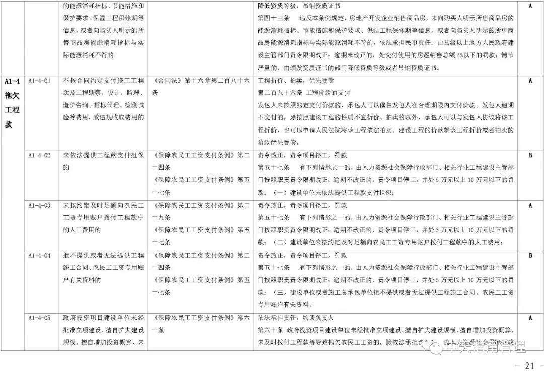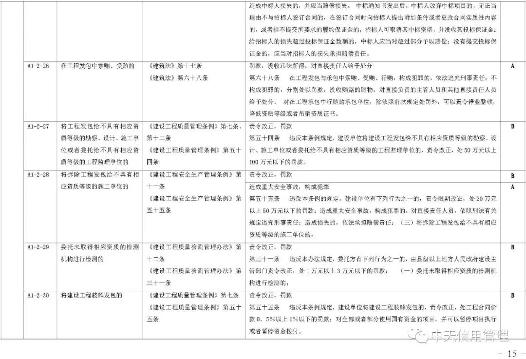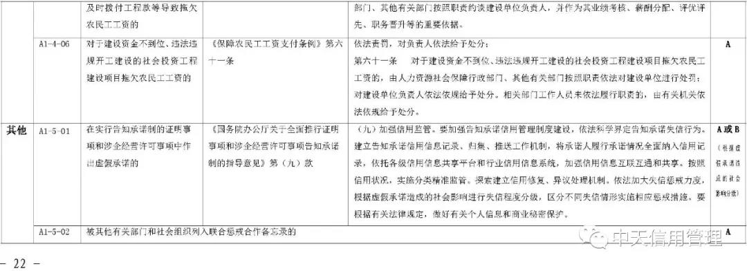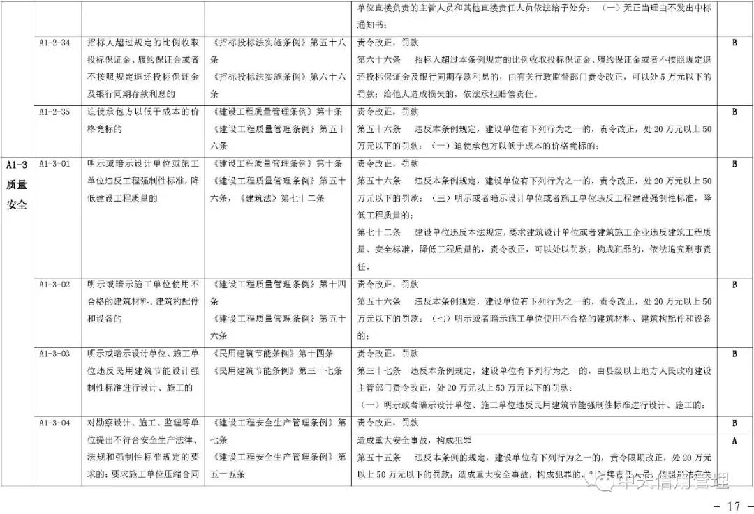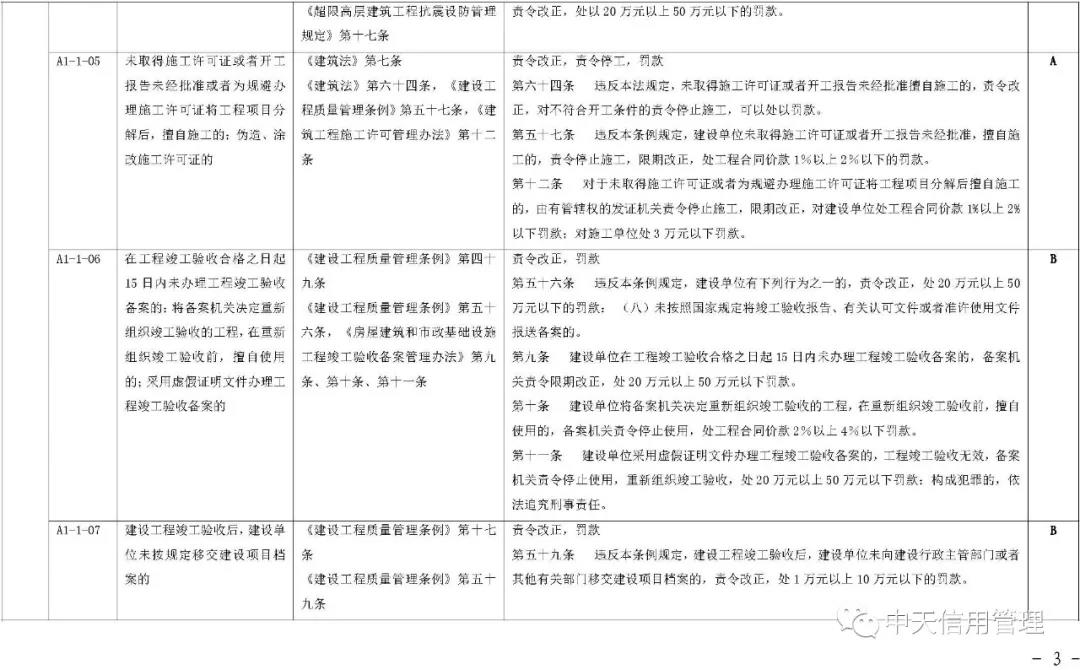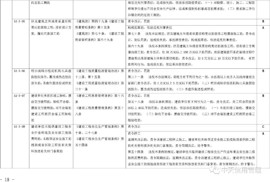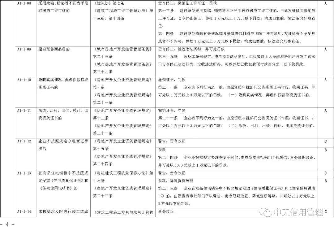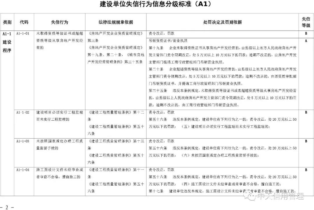 《标准》提出,将建筑市场失信行为信息实行分级管理,按照性质、危害程度的不同分为A级、B级、C级等失信等级。A级信息是指严重危害人民群众身体健康和生命安全,严重破坏市场公平竞争秩序和社会正常秩序,拒不履行法定义务且严重影响司法机关和行政机关公信力,严重破坏生态环境等违法失信行为信息。C级信息是指性质较轻、情节轻微、社会危害程度较小,且能按相关法律法规规定的简易程序做出行政处罚,或能做出责令改正行政处理的失信行为信息。B级信息是指性质、危害程度介于严重和轻微之间,未被认定为A级、C级信息的违法失信行为信息。 失信行为信息的认定单位应在认定信息的同时明确失信等级。有关部门、组织和个人在公开和使用失信行为信息时,应注明失信等级。建筑市场失信行为信息按照不同失信等级确定信息公开范围。A级、B级失信行为信息在全国建筑市场监管公共服务平台公开,C级失信行为信息由失信行为发生地的省级住房和城乡建设主管部门决定公开范围和方式。其他组织和个人转载的,应标注来源,转载内容应保持一致和完整。失信行为信息的认定单位应参照失信等级确定信息公开期限及起始日期。其中,A级失信行为信息的最短公开期限为6个月,最长公开期限为3年;B级失信行为信息的最短公开期限为3个月,最长公开期限为1年;C级失信行为信息的最短公开期限为1个月,最长公开期限为6个月。《标准》明确,建筑市场主体“黑名单”信息指经认定存在特定严重失信行为的建筑市场主体信息,管理期限为自被列入名单之日起1年。