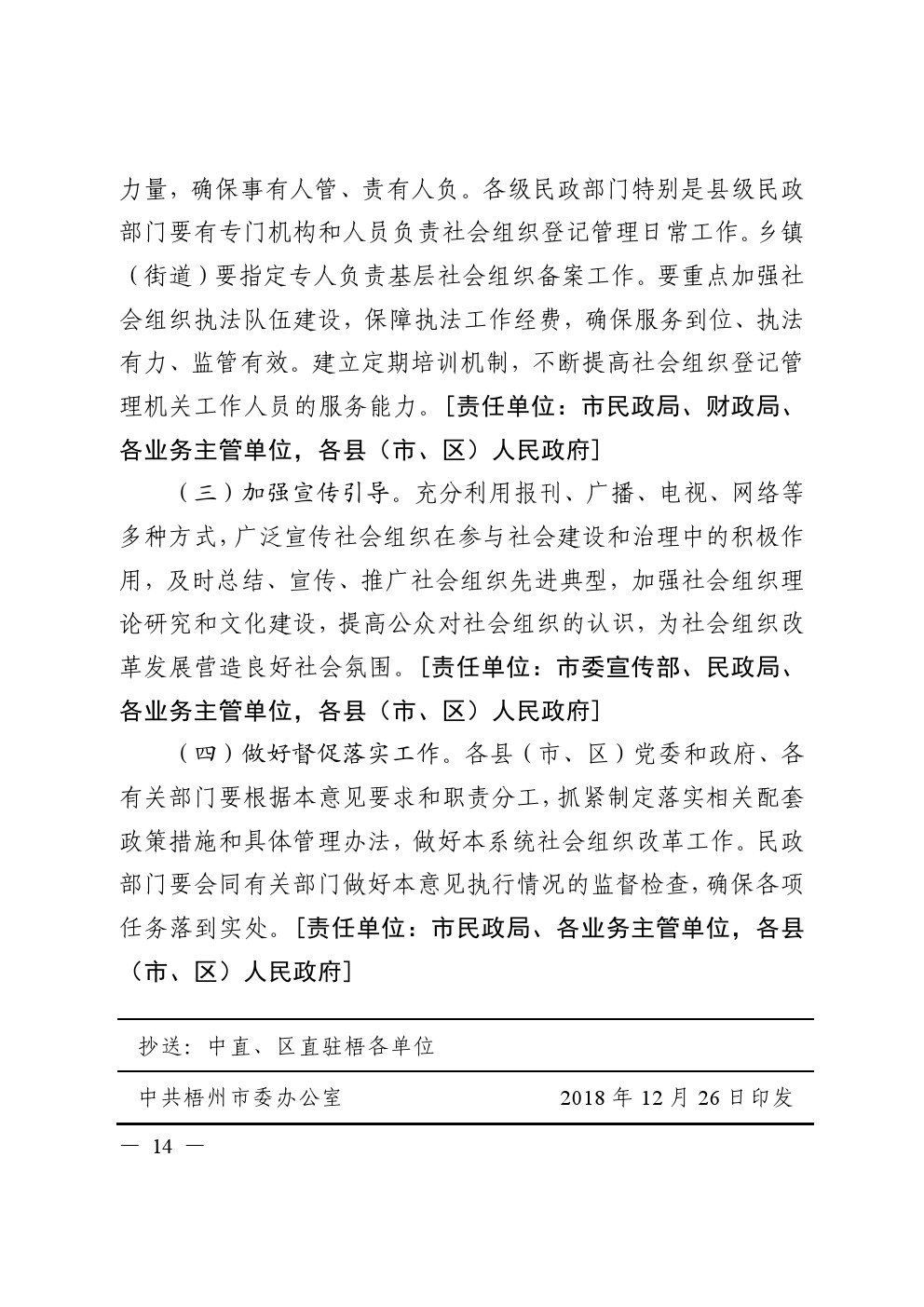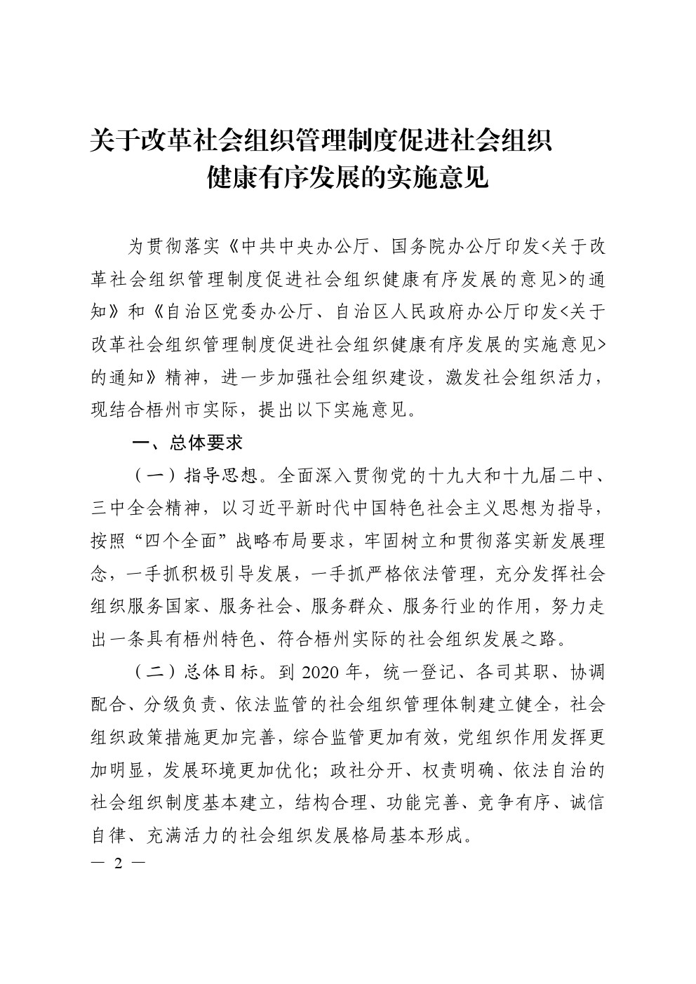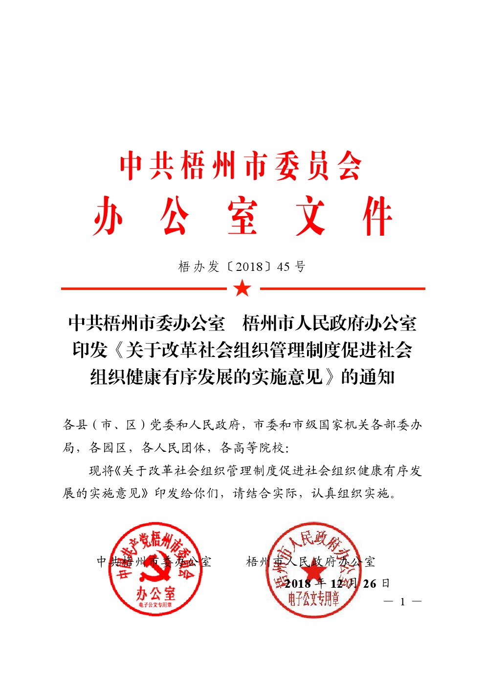中共梧州市委办公室 梧州市人民政府办公室印发《关于改革社会组织管理制度促进社会组织健康有序发展的实施意见》的通知