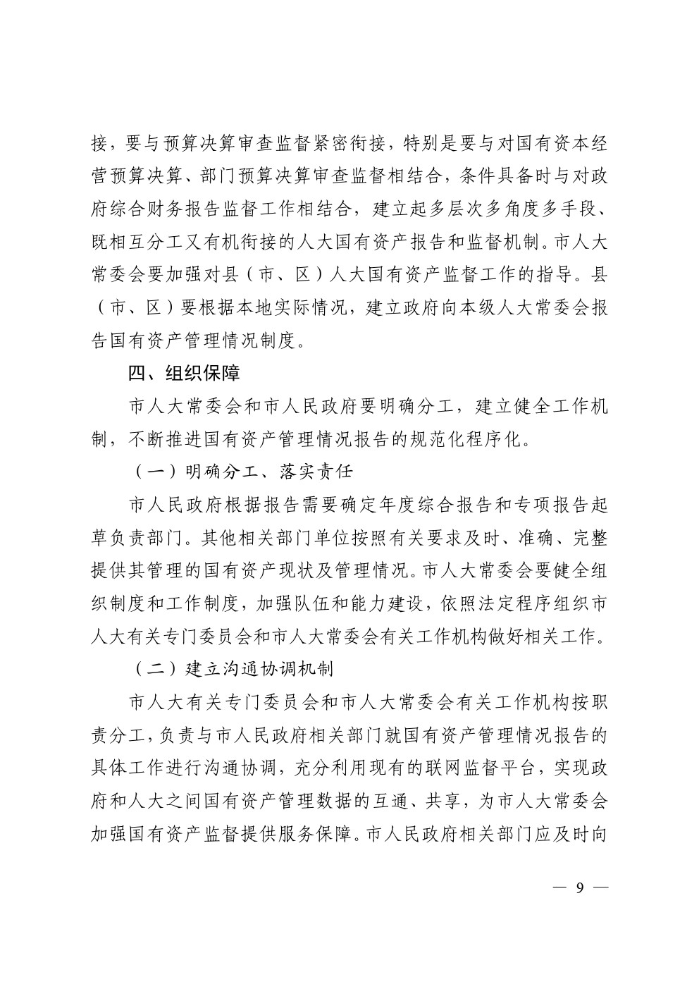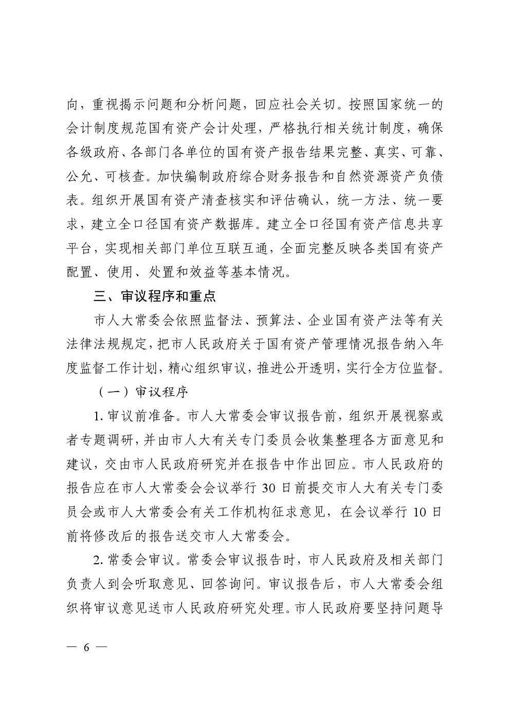 关于建立市人民政府向市人大常委会报告国有资产管理情况制度的意见