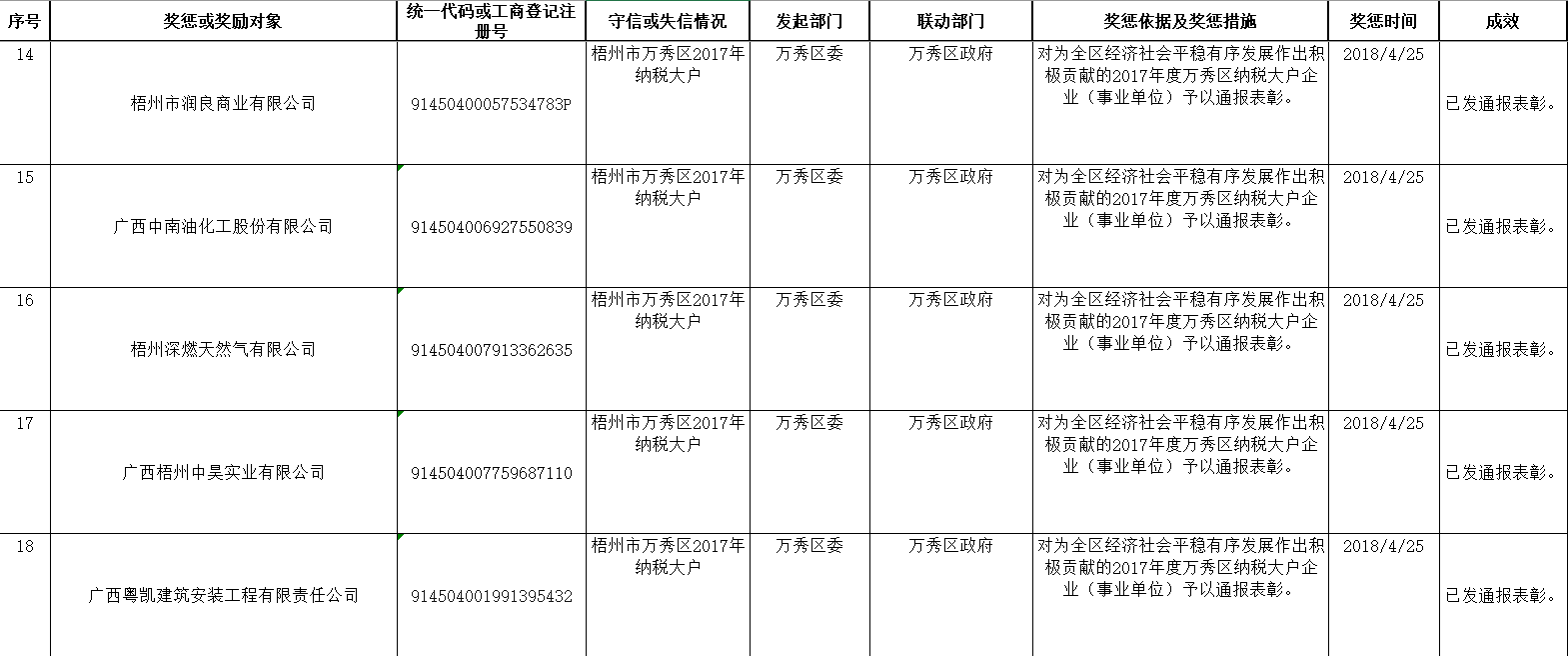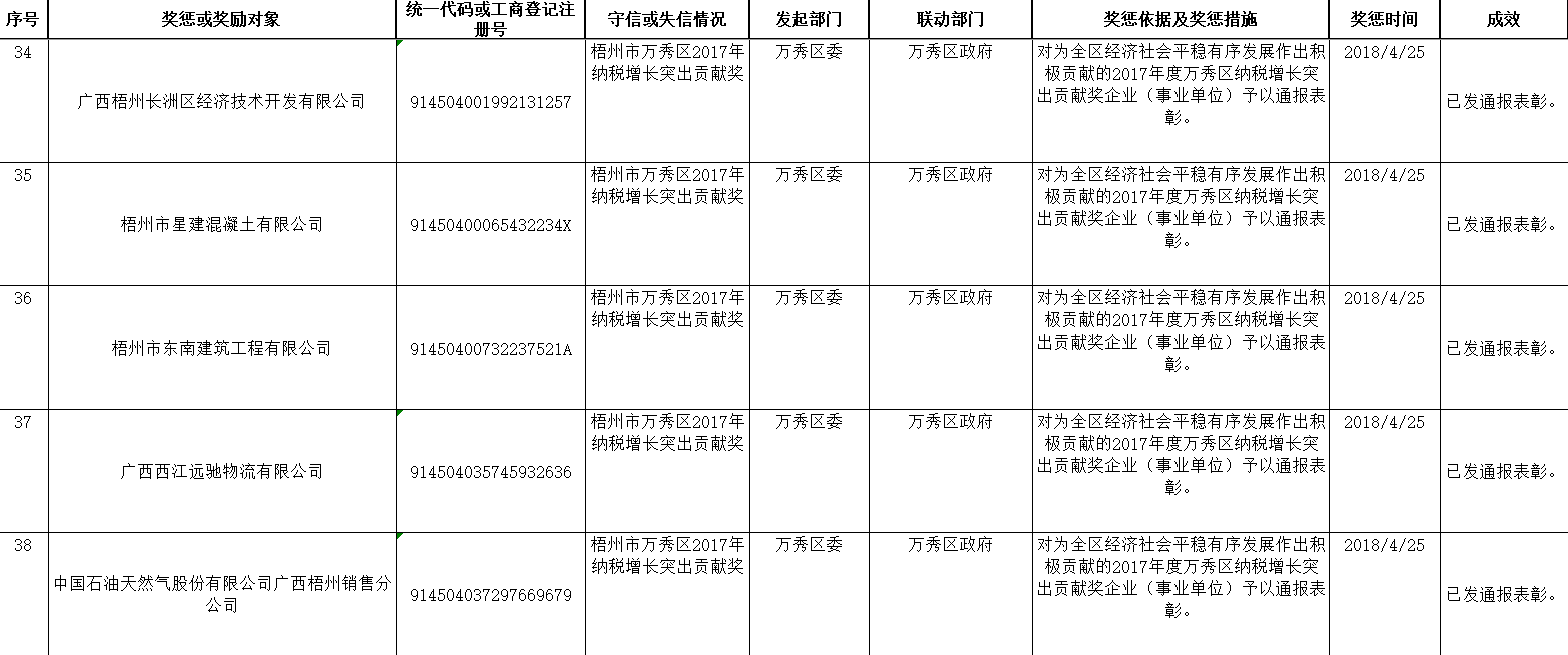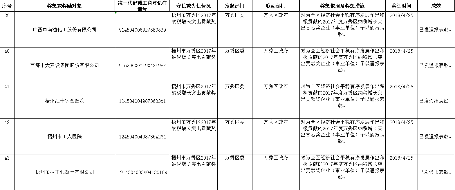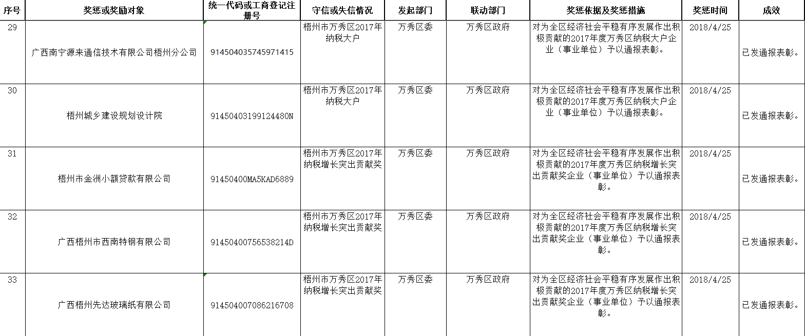 万秀区发改局城市信用监测联合奖惩案例反馈