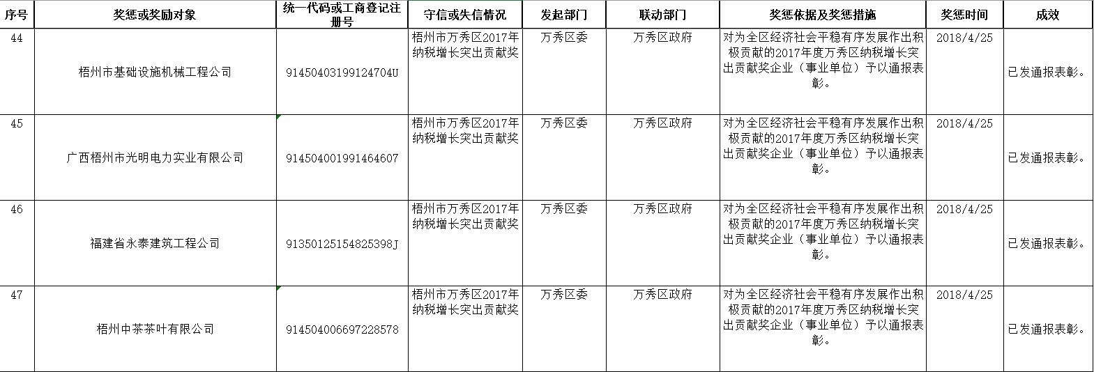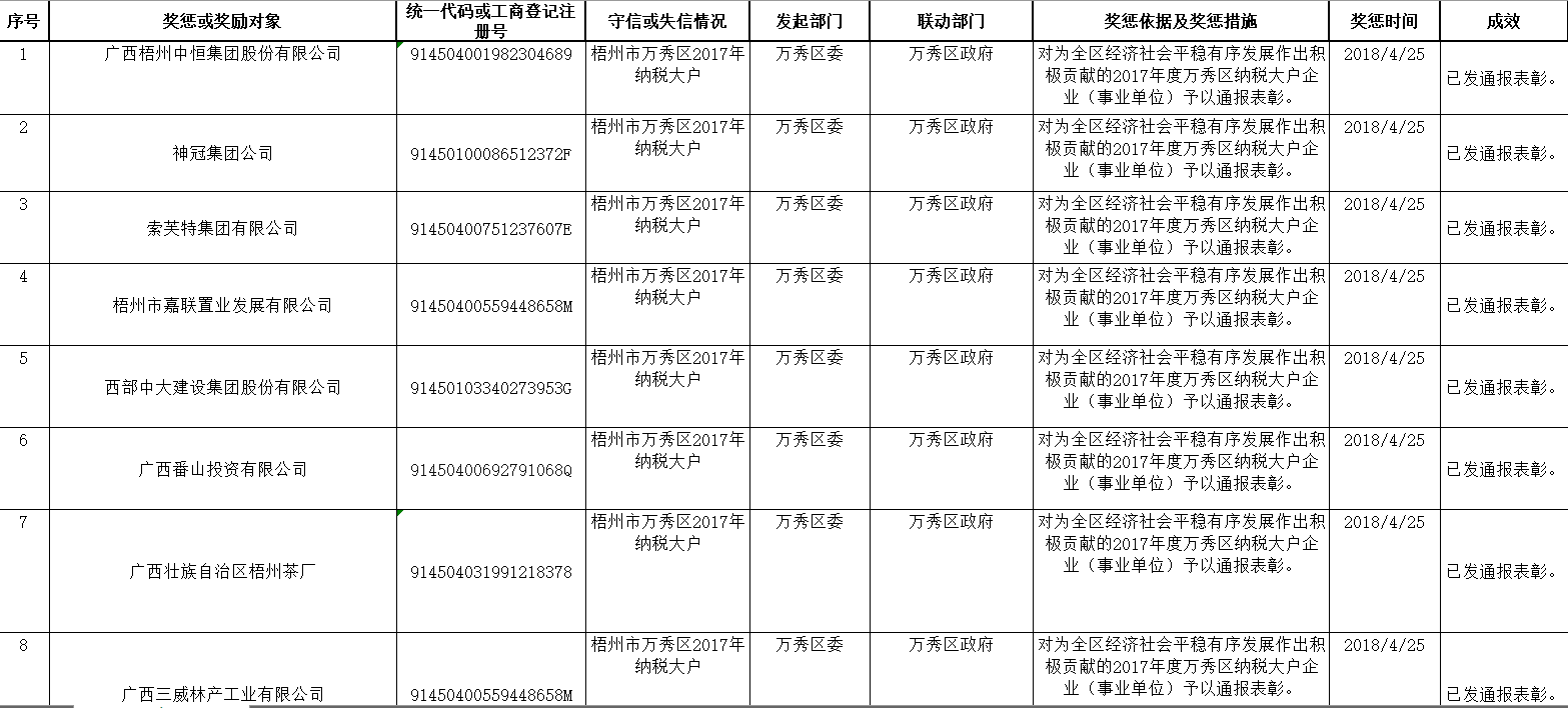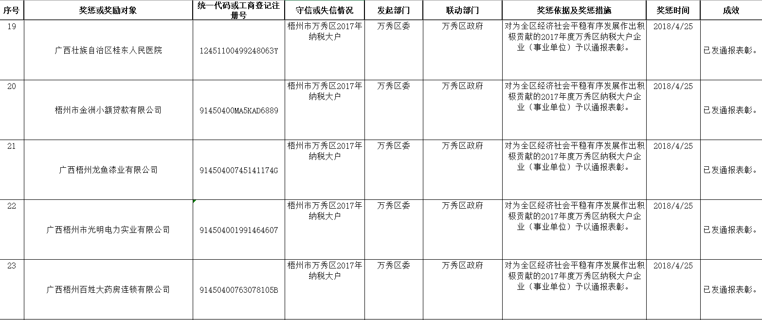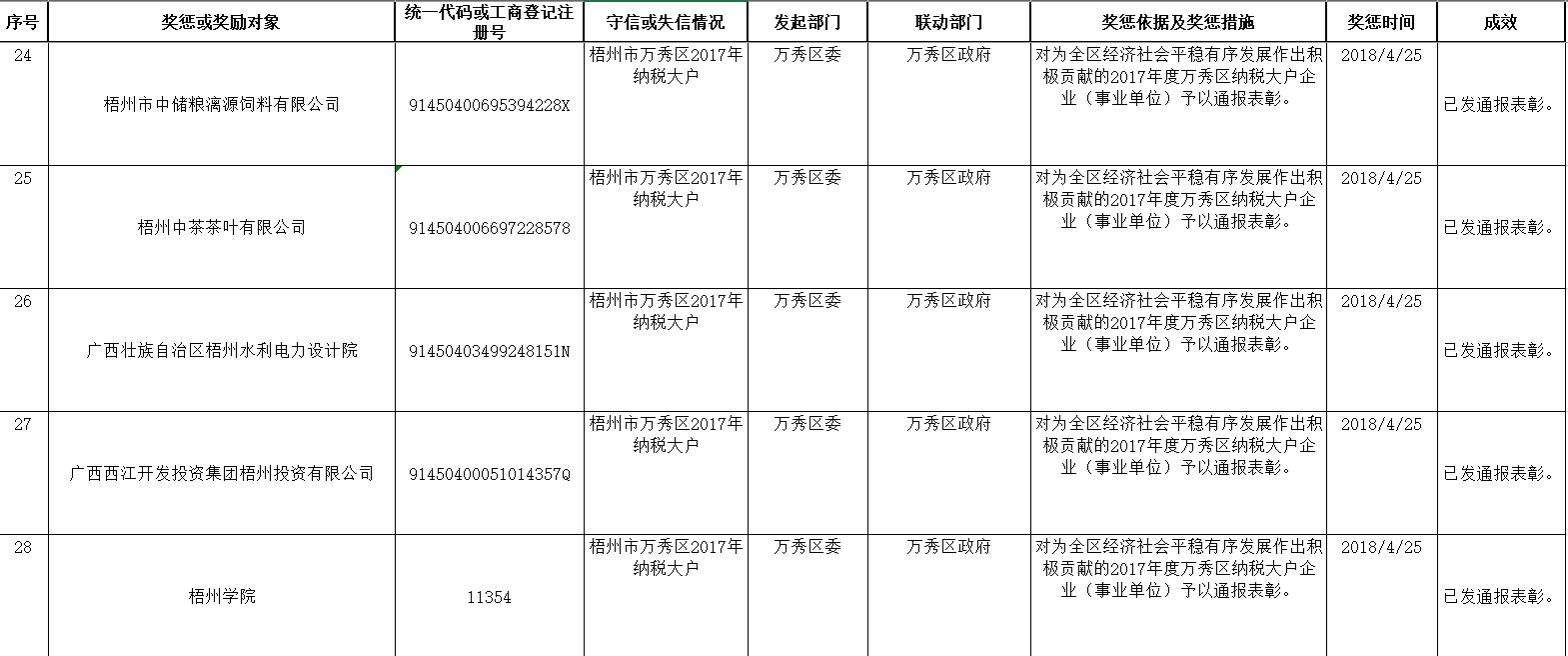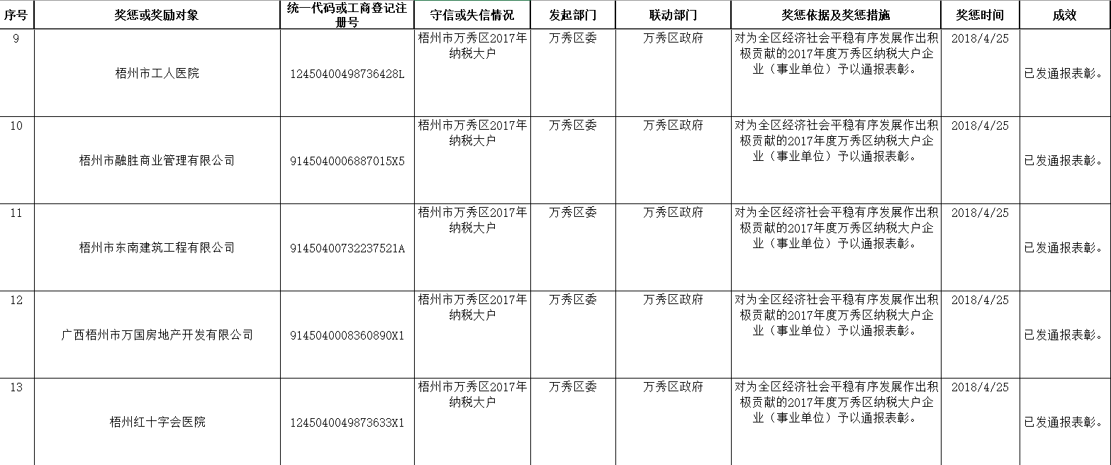 万秀区发改局城市信用监测联合奖惩案例反馈
