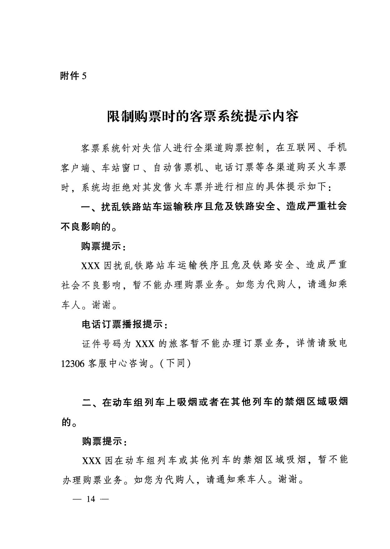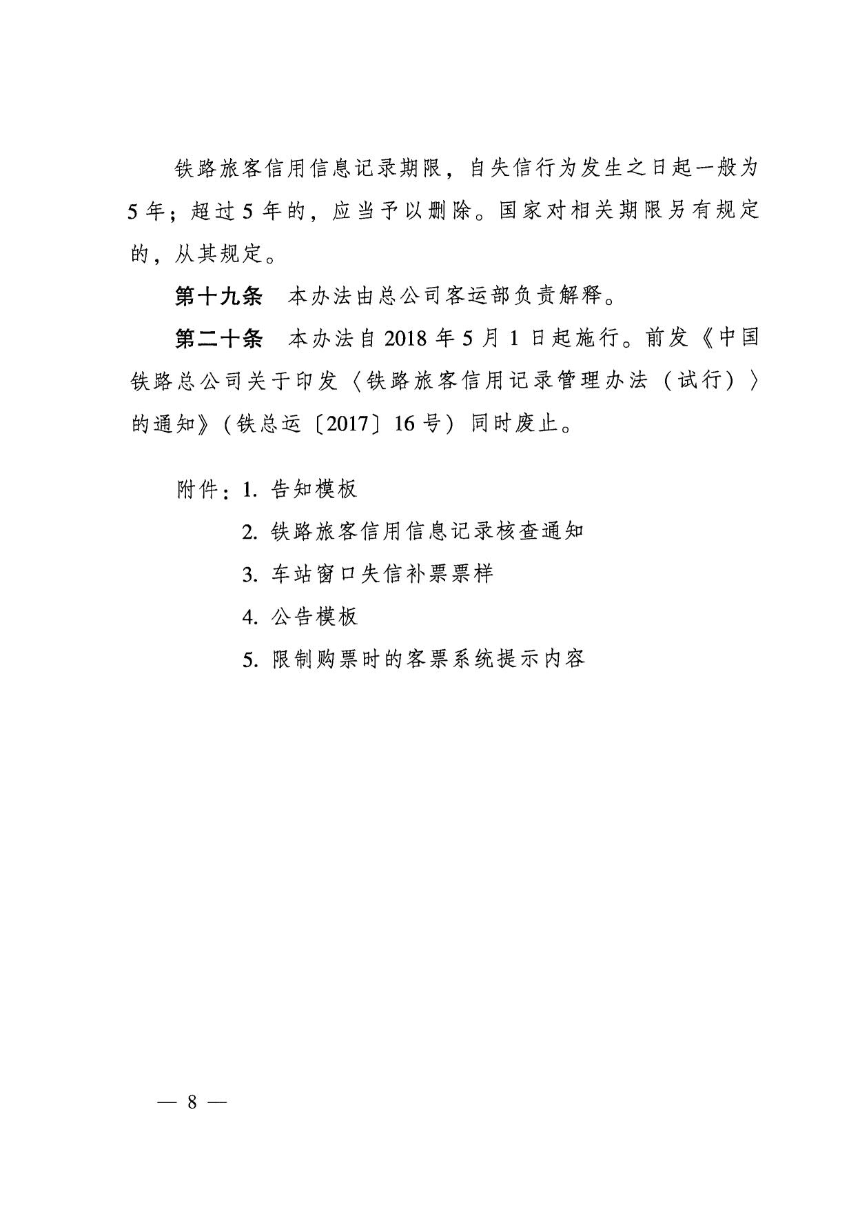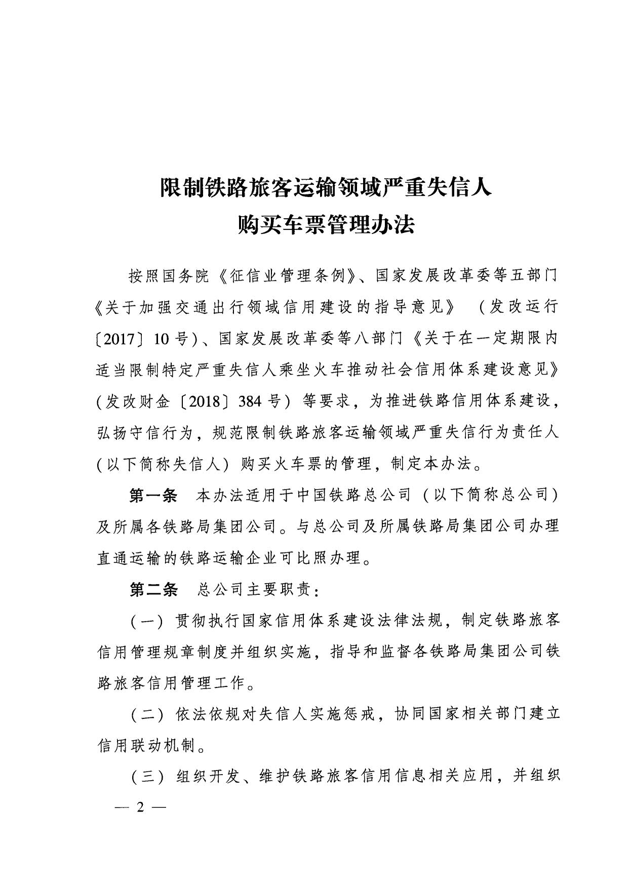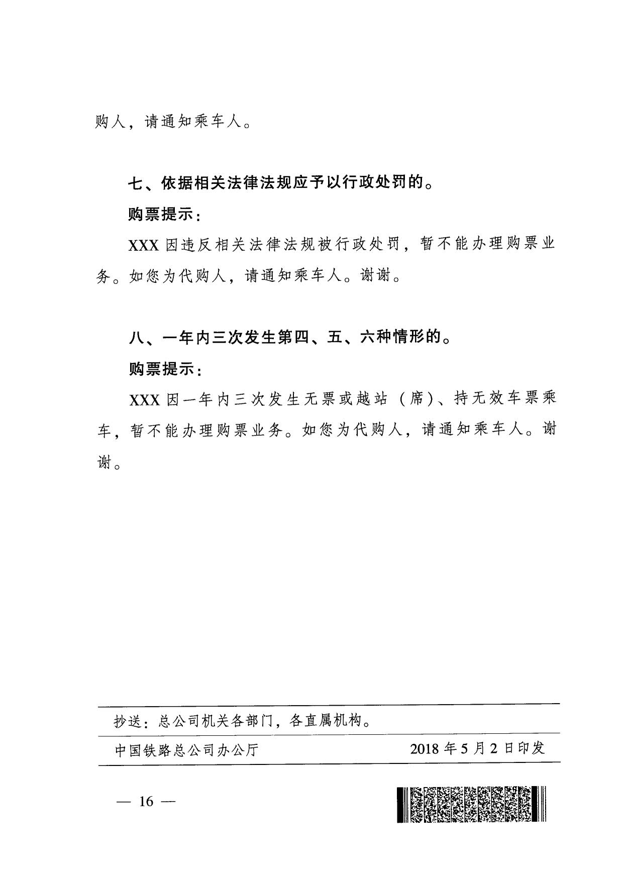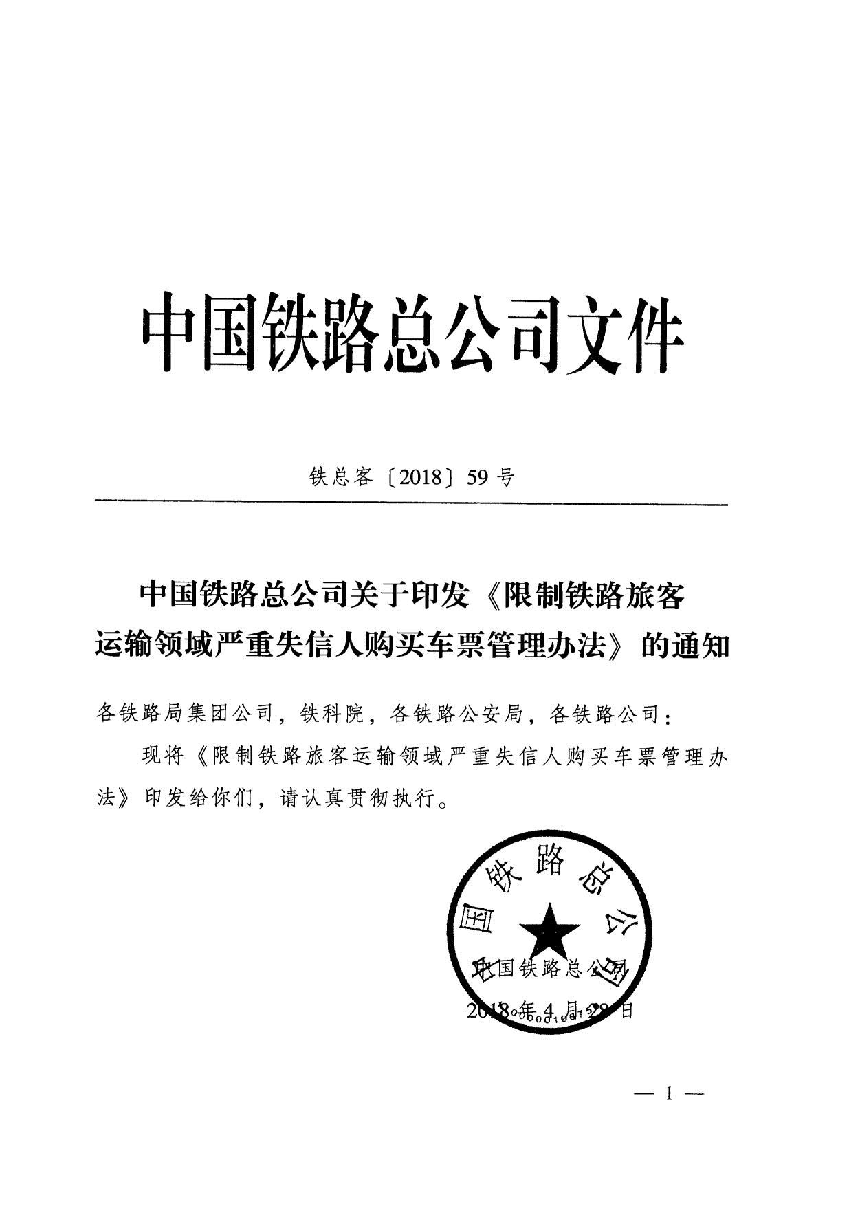 附件:中国铁路总公司关于印发《限制铁路旅客运输领域严重失信人购买车票管理办法》的通知铁总客[2018]59号