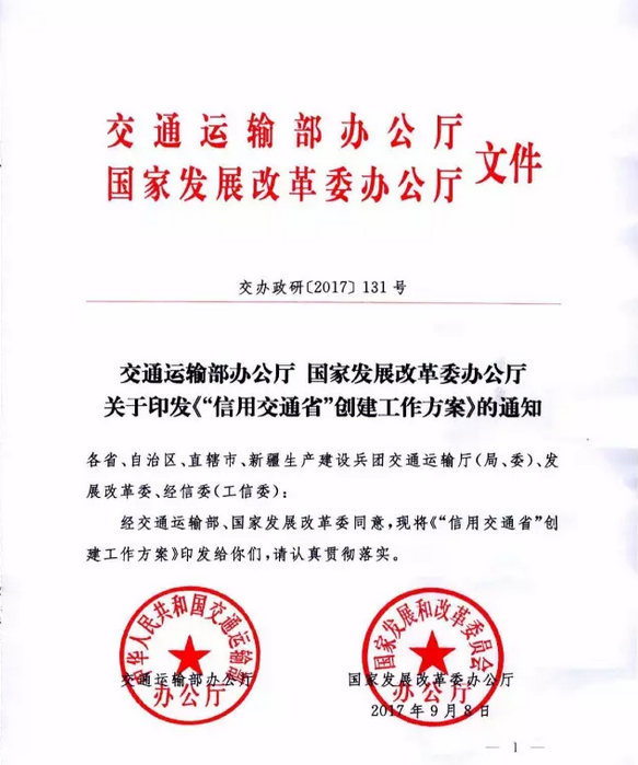 交通运输部办公厅 国家发展改革委办公厅关于印发《“信用交通省”创建工作方案》的通知