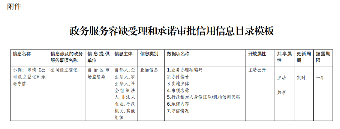 附件:政务服务容缺受理和承诺审批信用信息目录模板