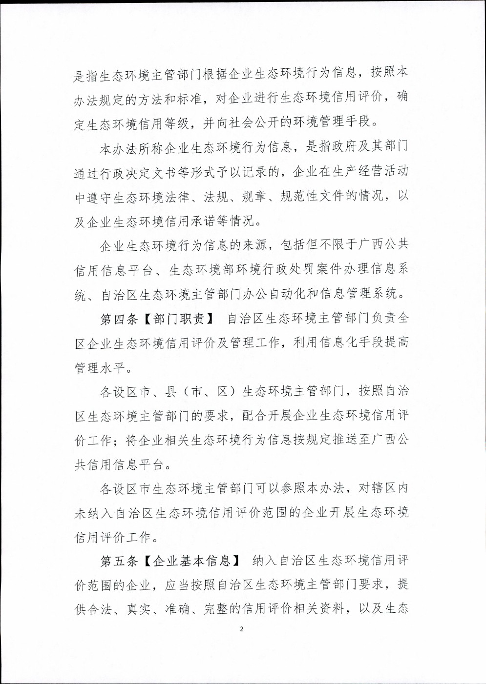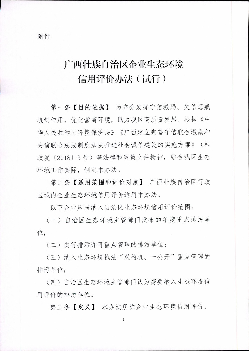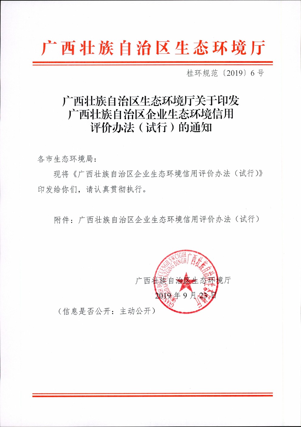 广西壮族自治区生态环境厅关于印发广西壮族自治区企业生态环境信用评价办法(试行)的通知